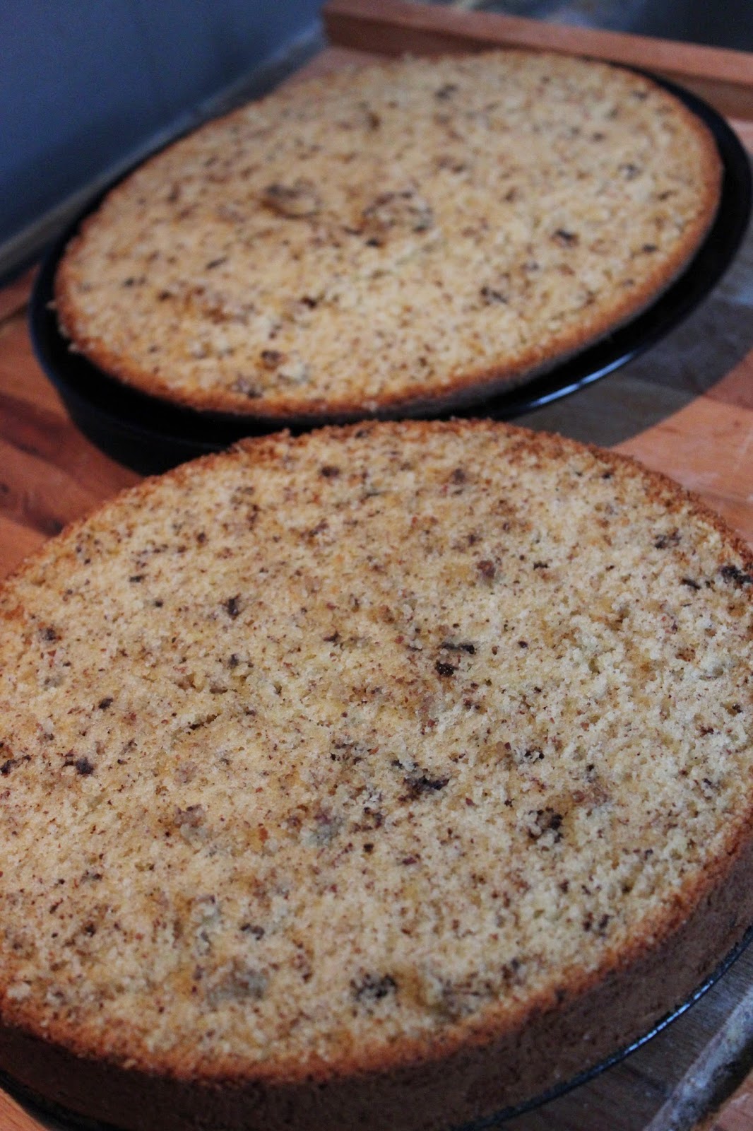 Wenn die Torte abgekühlt ist wird sie halbiert und der obere Teil wird abgenommen.