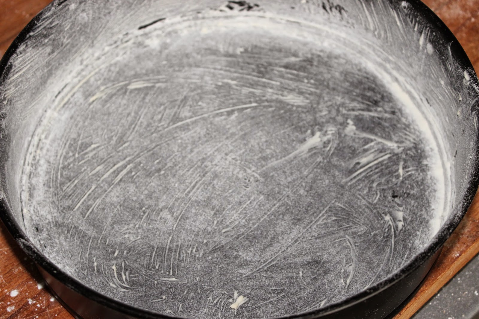 Eine Springform, 25cm, einfetten und mit Mehl ausstäuben.