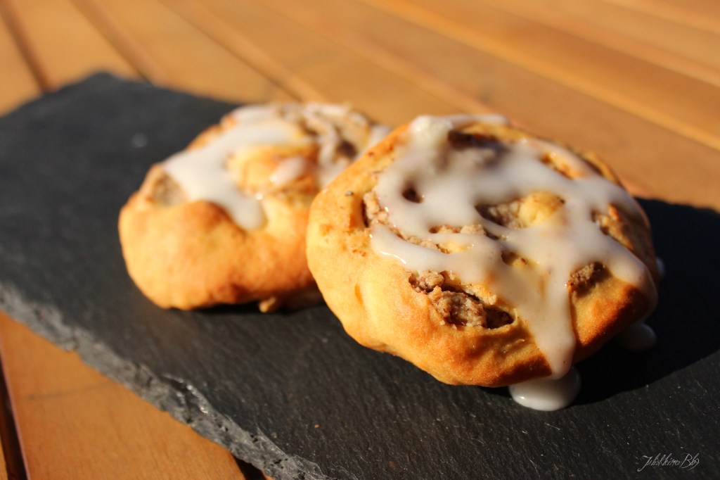 Die ausgekühlten Schnecken mit Zuckerguss bestreichen und servieren.