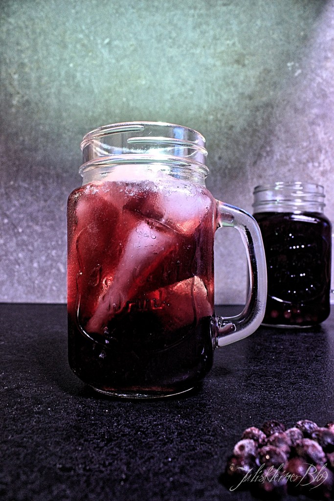 Die Heidelbeeren in einen Topf geben und mit Wasser übergießen. Aufkochen lassen und den Honig dazugeben. Den Topf vom Herd nehmen. Teebeutel in den Topf geben und 5 Minuten ziehen lassen. Durch ein Sieb gießen und den heißen Tee in Flaschen füllen. Im Kühlschrank abkühlen lassen.