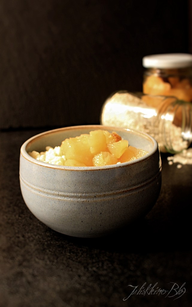 Mit Apfel-Birnen Kompott, Zimtzucker oder Früchten servieren.