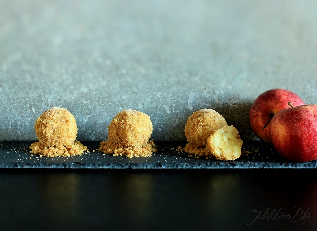 Dann die Äpfel mit Mehl, Salz und Ei zu einem Teig verkneten und für ca. Stunde im Kühlschrank rasten lassen.