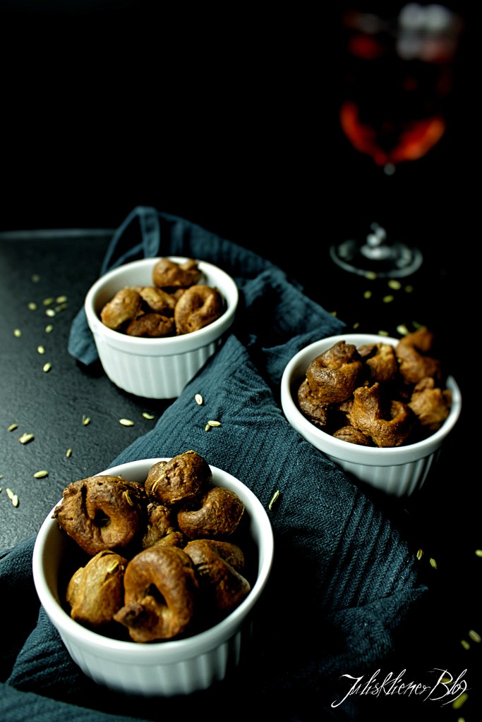 Den Teig zu einer ca. 8mm dicken Wurst rollen und daraus kleine Knoten formen. In einem Topf Wasser zum kochen bringen und die Taralli darin für ca. 1-2 Minuten kochen lassen bis sie aufsteigen.