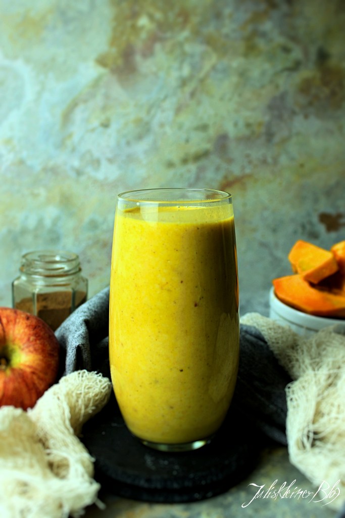 Apfel waschen, entkernen und in Stücke schneiden. Dann alle Zutaten in einem Mixer pürieren.