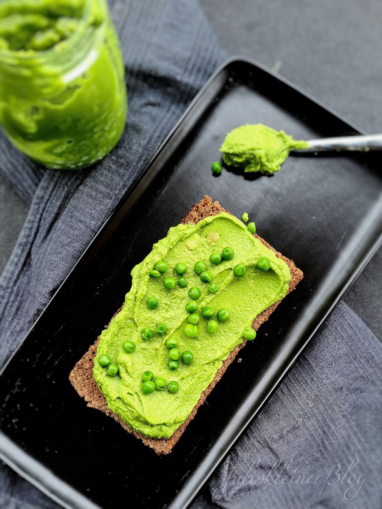 Die Erbsen abgießen aber etwas von dem Wasser auffangen.