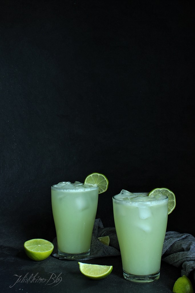 Limetten und Zitrone waschen und in grobe Stücke schneiden. Mit den restlichen Zutaten in einen Mixer geben und fein mixen.